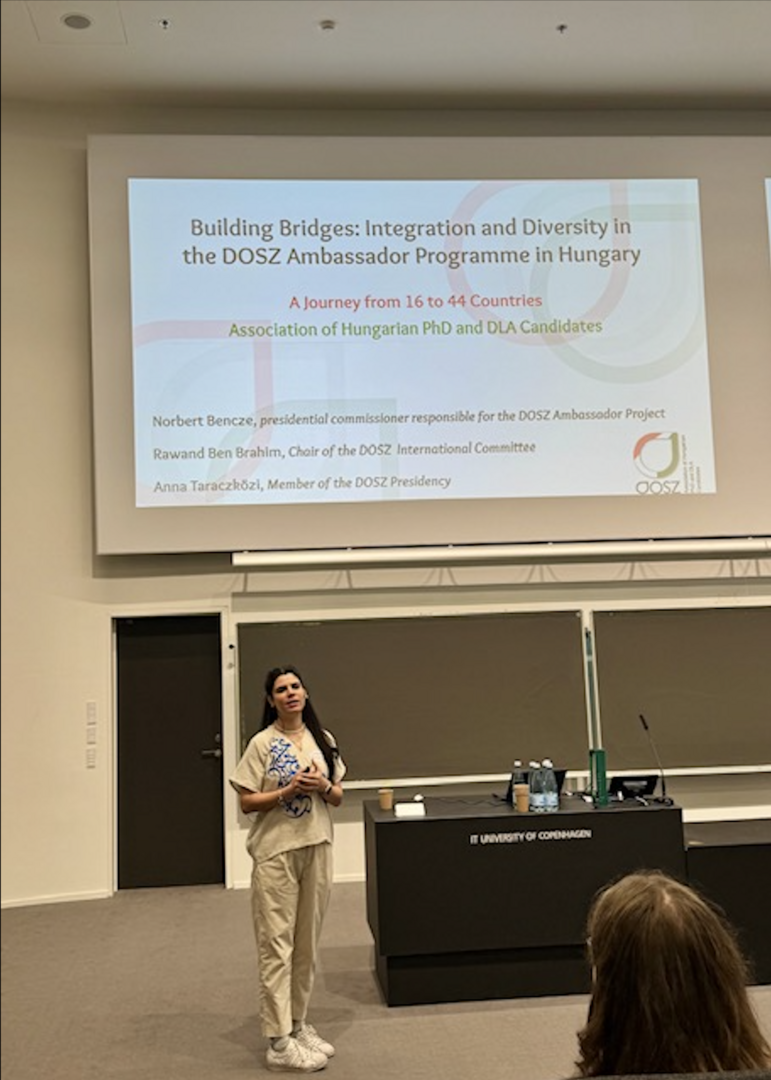 As part of the programme, our colleague Rawand Ben Brahim gave a keynote presentation “Building Bridges: Integration and Diversity in the DOSZ Ambassador Programme in Hungary,” highlighting Hungary’s initiatives to promote inclusion and intercultural engagement in academic communities, serving as an example of a best practice for other countries. Both Rawand and Anna contributed to the AGM discussions and elections for the new Eurodoc administration for 2025/26.